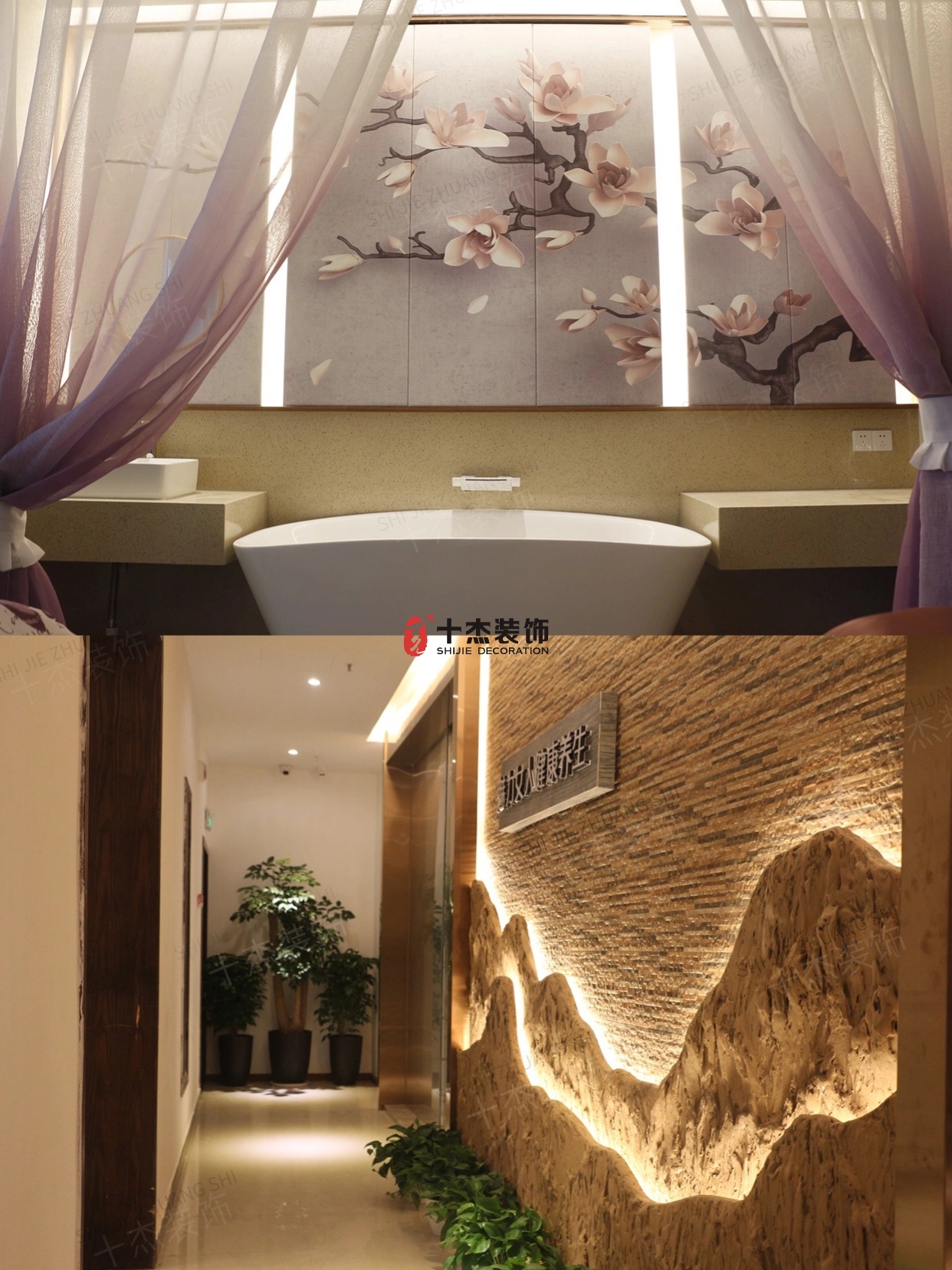 自然款:仿山石墻面 + 燈帶→ 把山谷搬進(jìn)走廊
