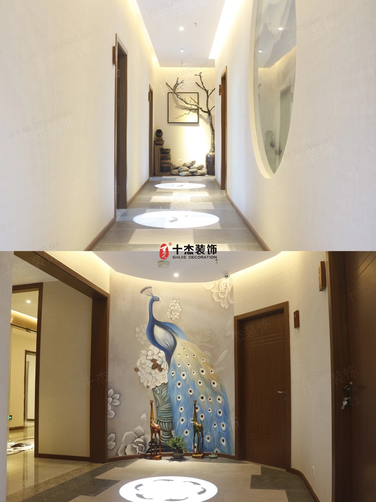 藝術(shù)款:孔雀壁畫 + 對稱擺飾→ 進(jìn)門被藝術(shù)感轟炸