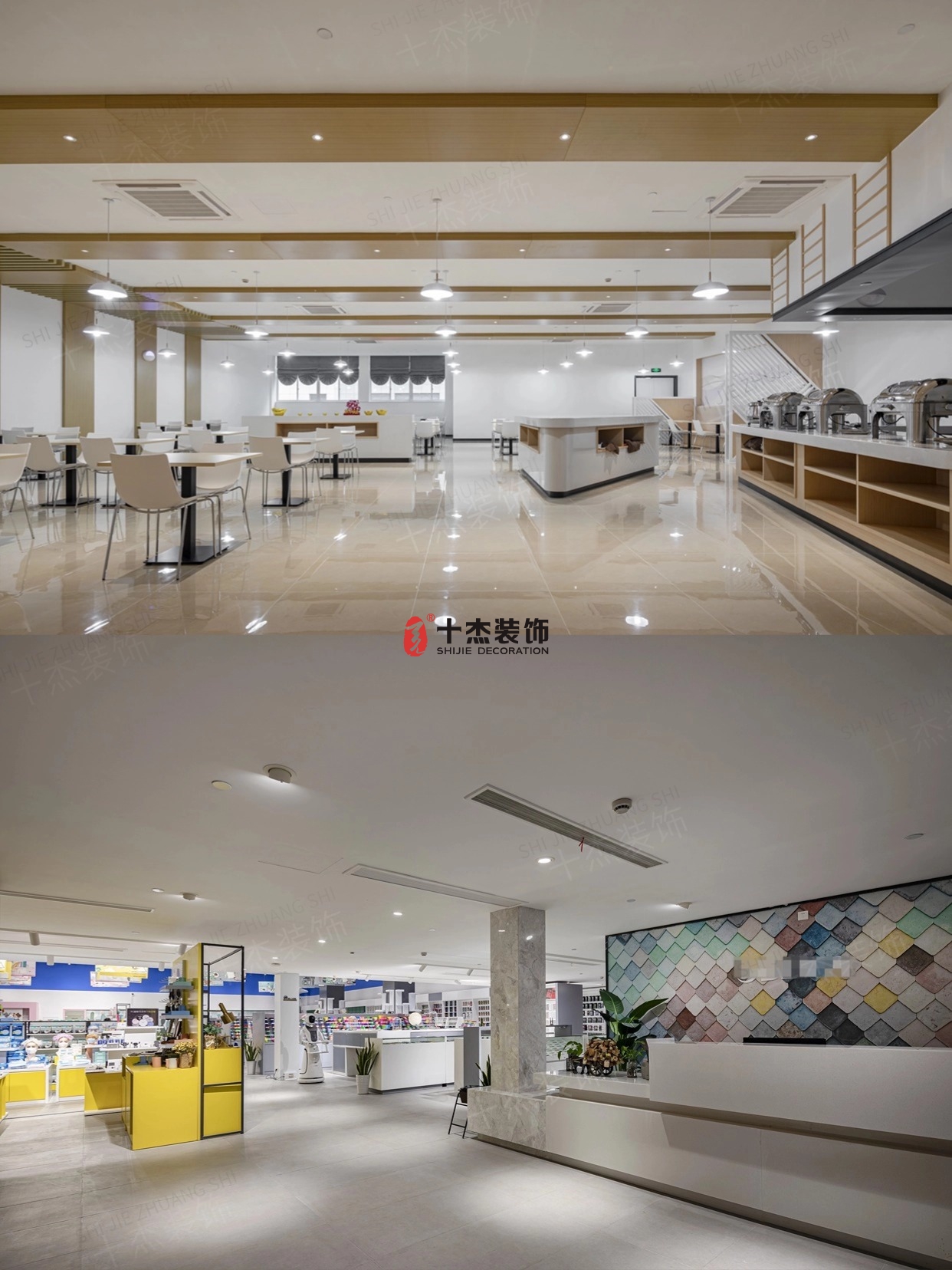 食堂像高端餐廳,米白色調(diào)干凈又溫柔,吃飯幸福感直接爆棚