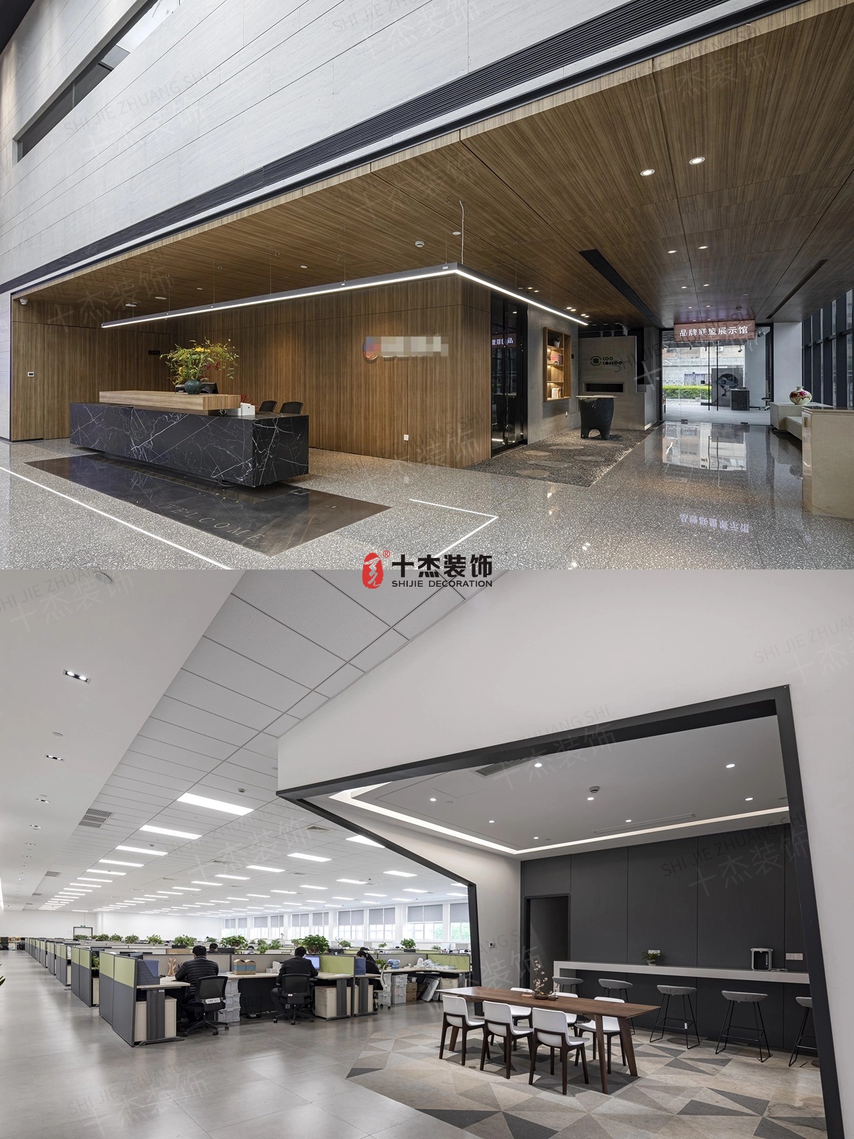 木質(zhì)吊頂溫暖又高級,黑色大理石前臺質(zhì)感爆棚