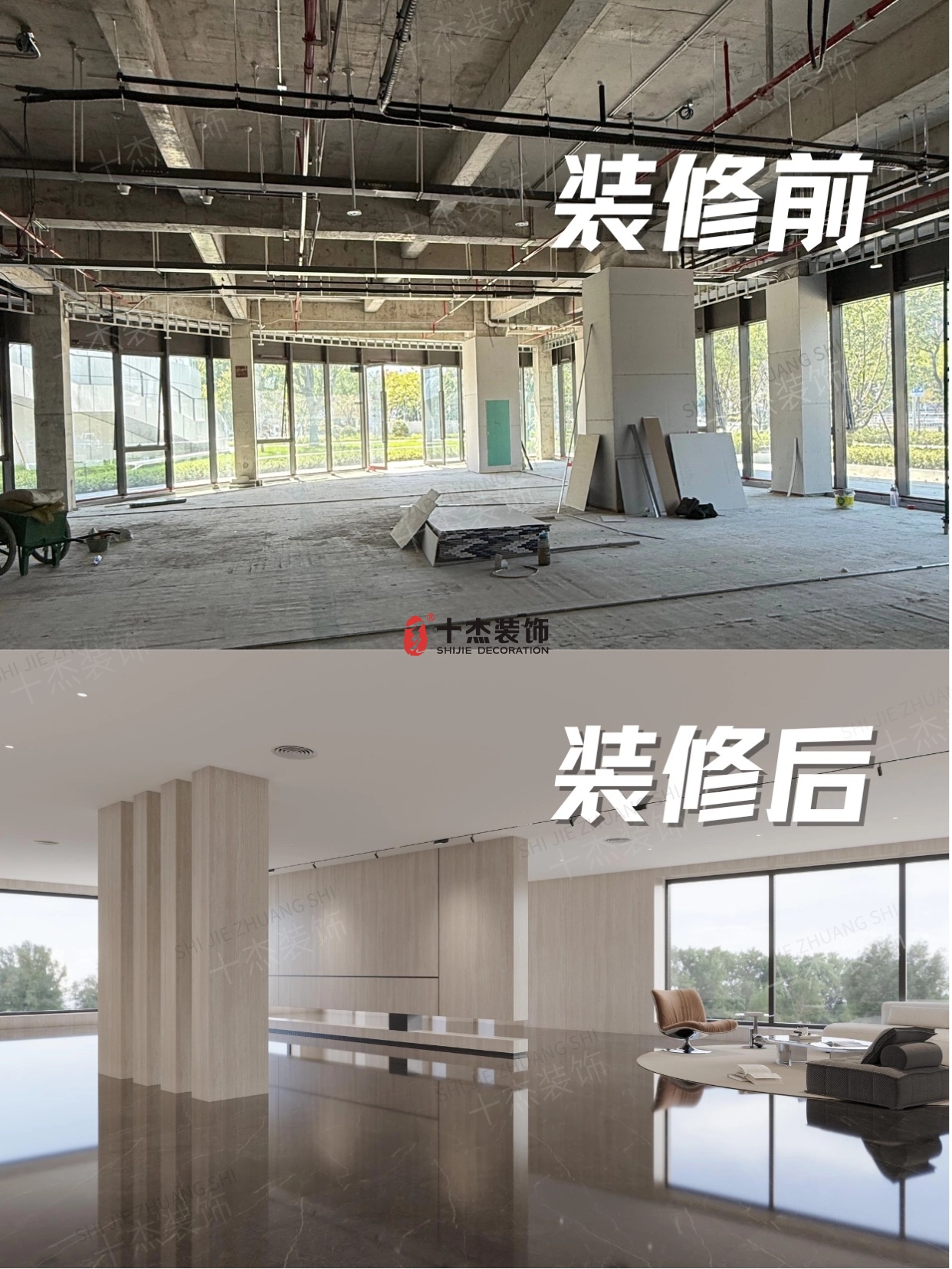 之前的墻面粗糙、地面全是灰…