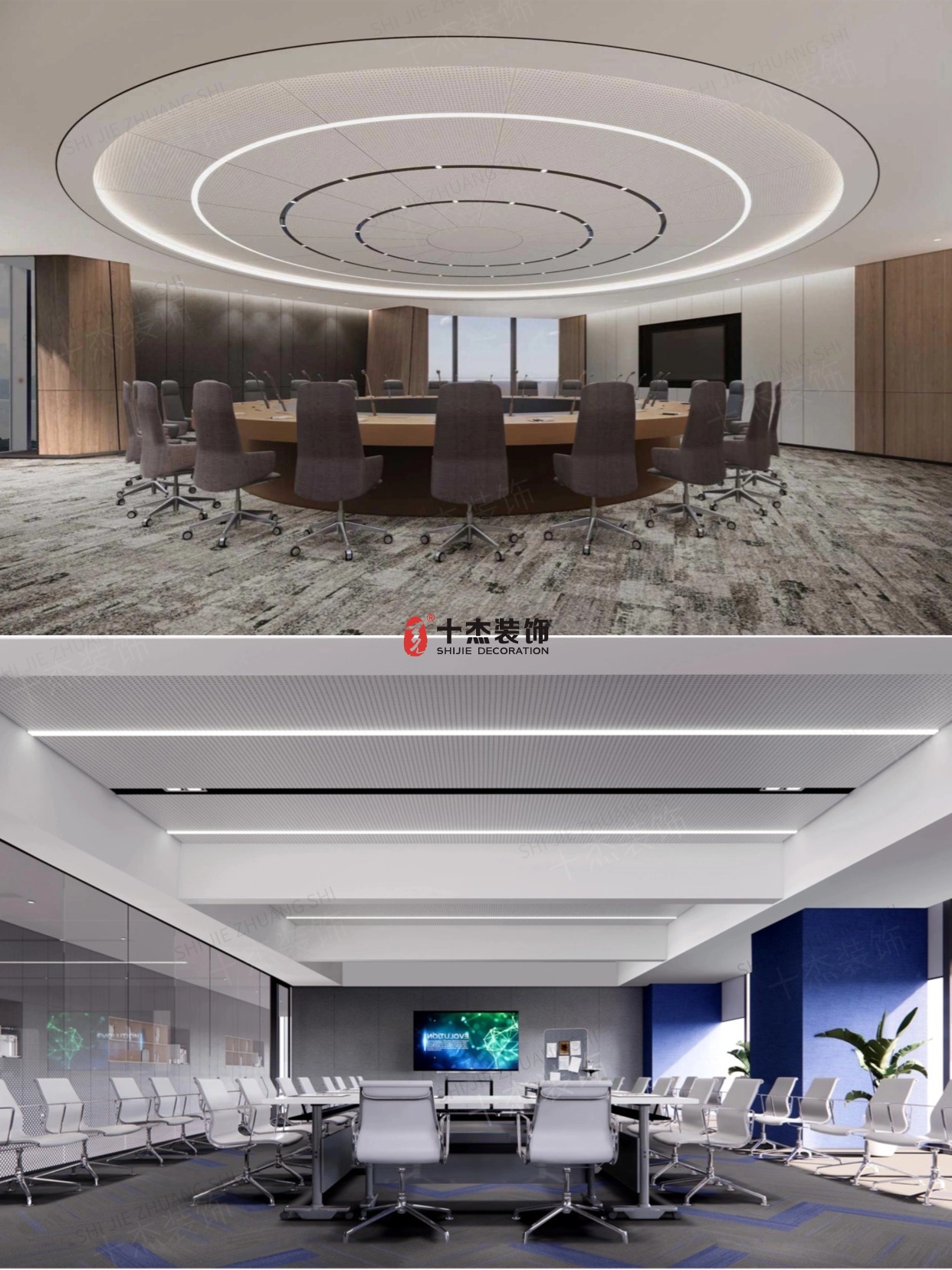 圓桌會(huì)議室做了環(huán)形燈光 + 隔音墻