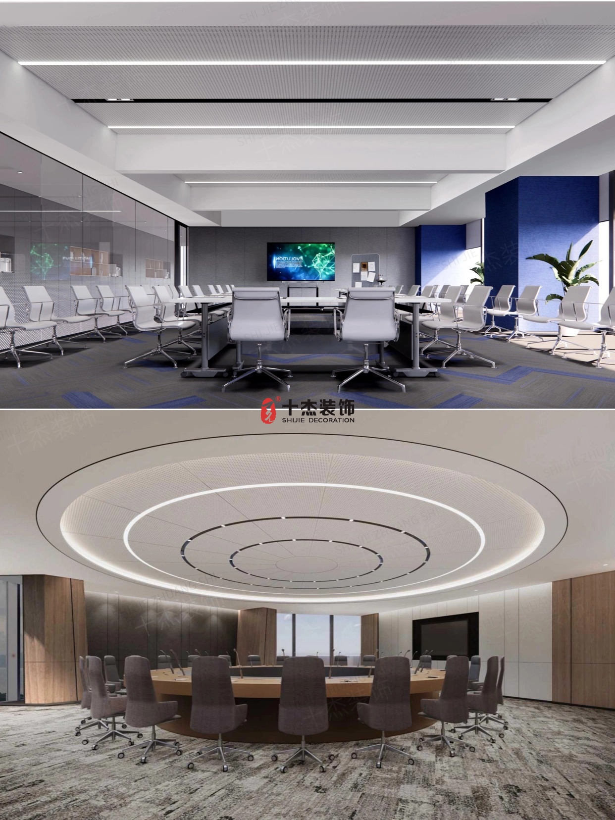 大會(huì)議室長(zhǎng)桌 + 智能顯示屏 + 環(huán)形燈光