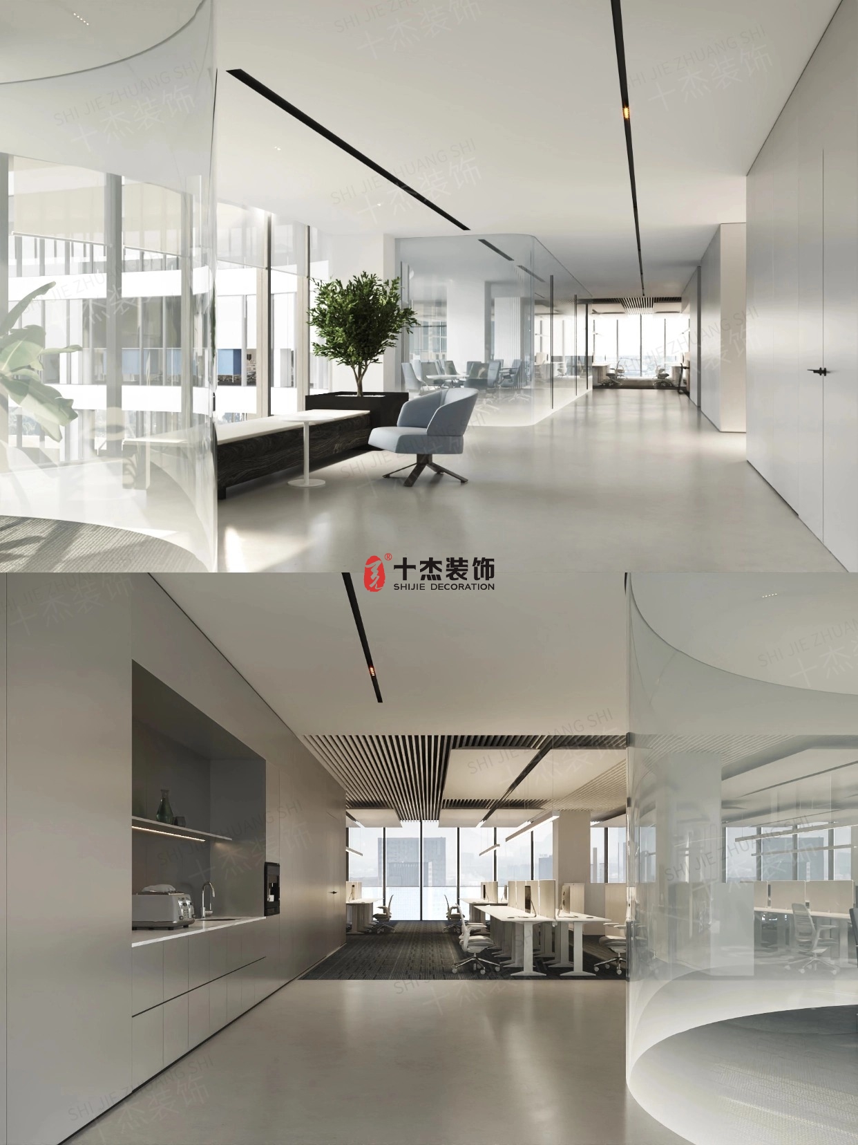 弧形玻璃隔斷 + 極簡(jiǎn)灰白調(diào)