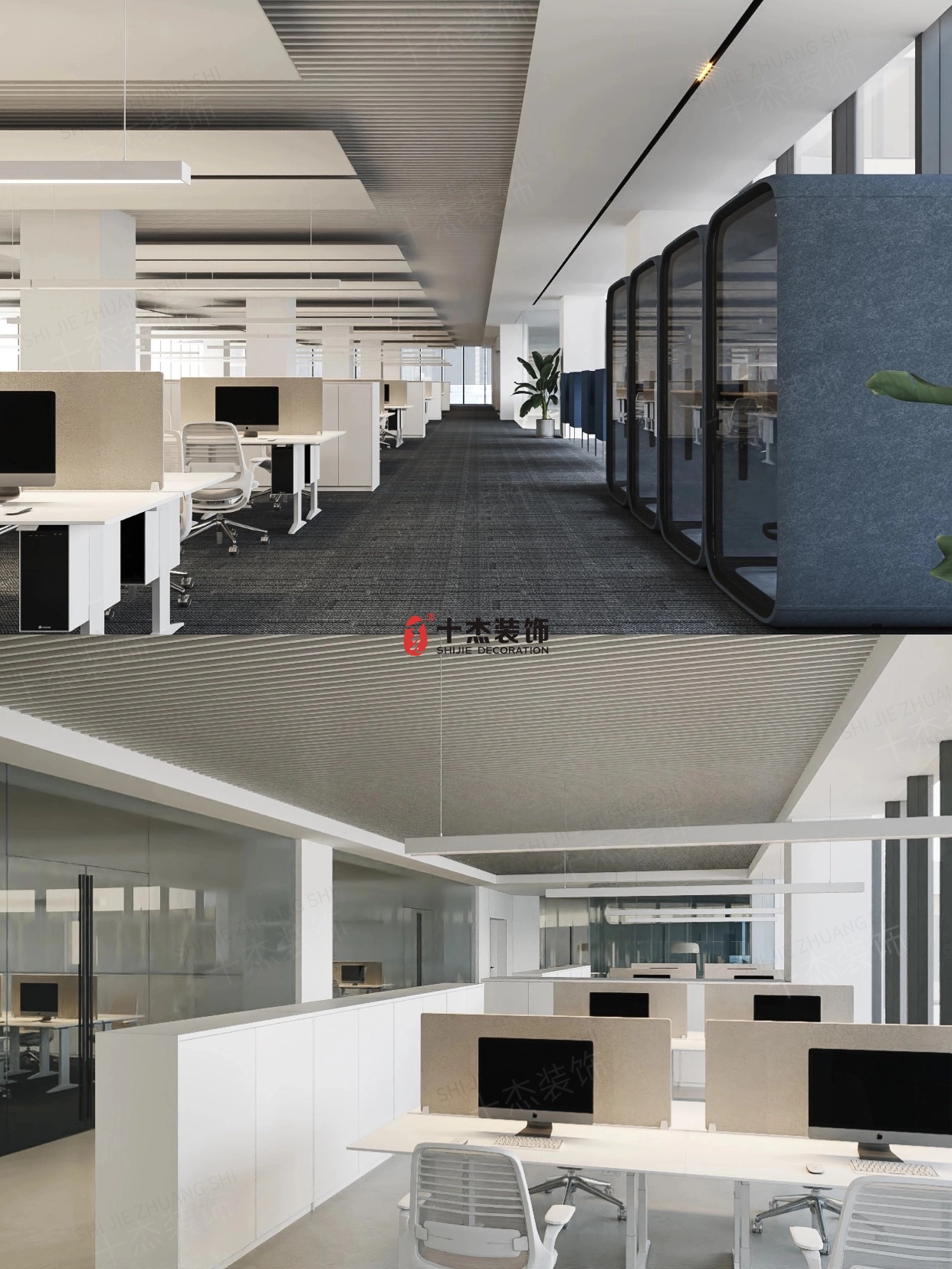 開放式工位 + 獨(dú)立辦公艙雙配置