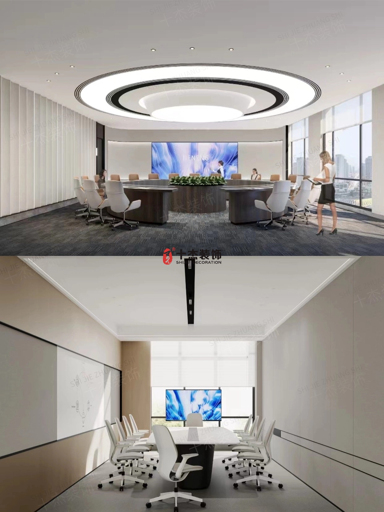 會議室:環(huán)形桌 + 懸浮燈光,開會都像在開創(chuàng)意茶話會