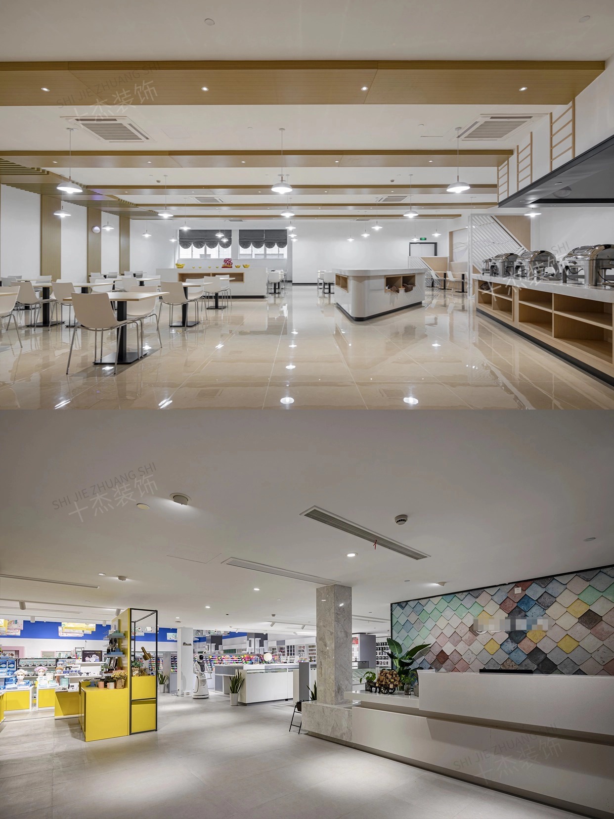 食堂像高端餐廳,米白色調(diào)干凈又溫柔,吃飯幸福感直接爆棚~