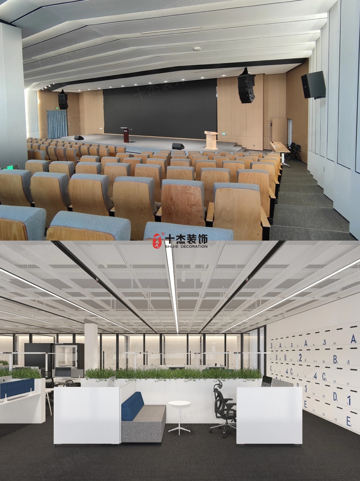 頂部線性燈帶與網(wǎng)格吊頂